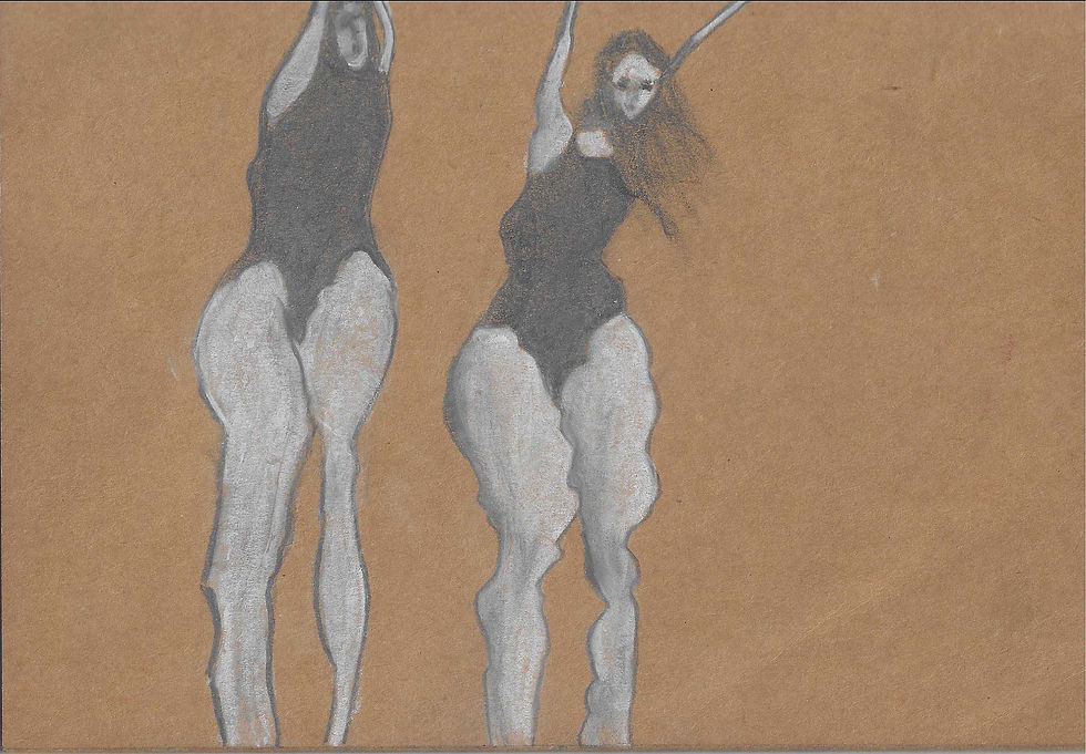 In these works, I explore the almost clinical transition between reality and its reflection. I am fascinated by this intersection—a fantastic encounter where the human body sheds its boundaries and dissolves into the environment. Through graphite and charcoal, I map the 'grey area' where motion becomes abstract form and reality distills into pure imagination and memory.